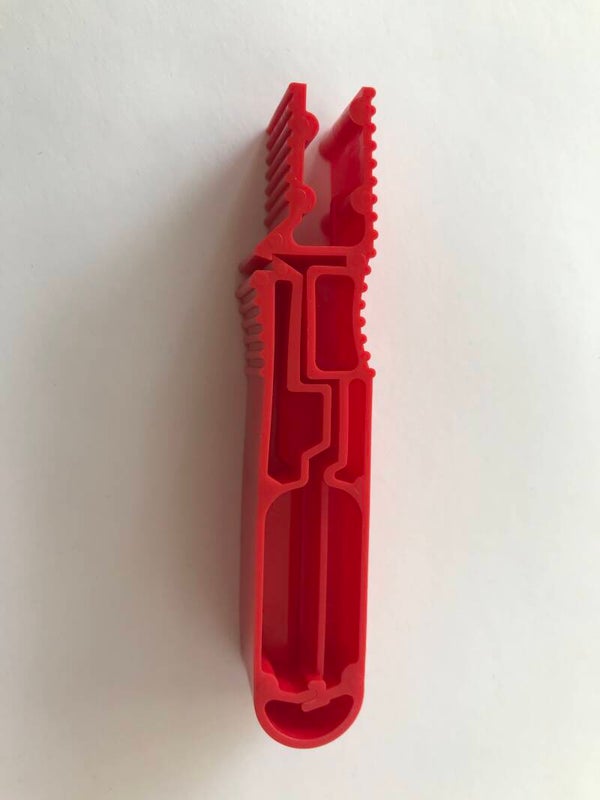 Pinza ultraclamp para bolsa gemela. Diseñada para facilitar la oclusión del paso del líquido a través de tubos de la bolsa con solución de diálisis.